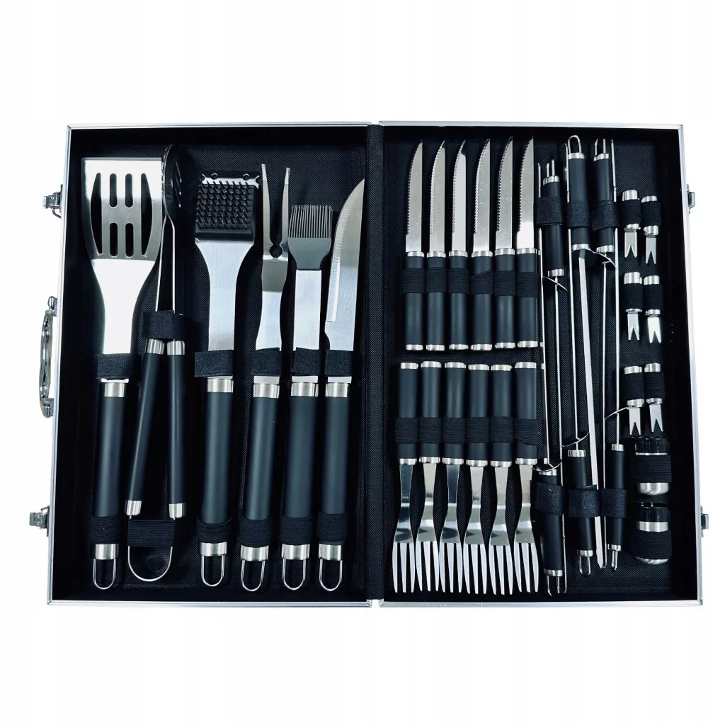 Zestaw narzędzi i sztućców do grilla 33-elementowy to kompleksowe rozwiązanie dla miłośników grillowania.