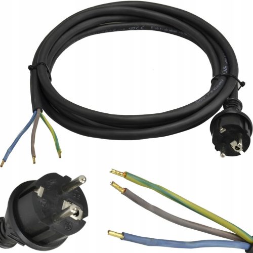 Polskiej produkcji, wysokiej jakości przewód przyłączeniowy w powłoce gumowej zakończony fabrycznie zalewaną, nierozbieralną wtyczką prostą z uziemieniem. Z drugiej strony żyły przewodu zakończone tulejkami ułatwiającymi podłączenie do urządzenia.