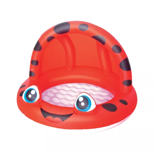 Ten intensywnie czerwony brodzik to radosna biedroneczka. Posiada ogromną zaletę, czyli dmuchaną osłonę, która sprawdzi się w walce z promieniami słonecznymi oraz wiatrem. Wymiary zabawki to 97 x 66 cm. Basenik mieści 26 litrów wody i posiada bezpieczne, pompowane dno, które amortyzuje ewentualne upadki. Zabawka wykonana została bardzo starannie, z materiału PVC. Jest on solidny, elastyczny i odporny na przetarcia. W razie przebicia, dołączono zestaw naprawczy.