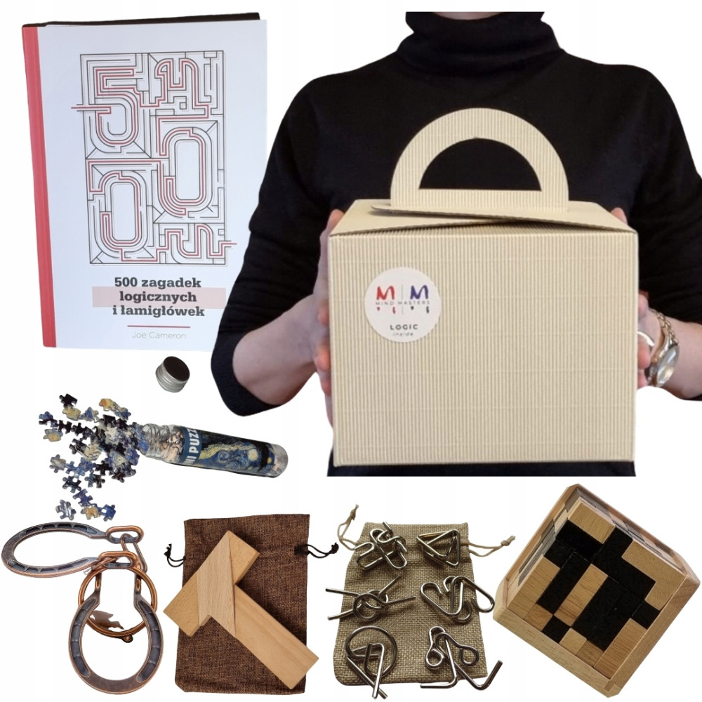 W zestawie LOGIC BOX oprócz książki, która jest jego "sercem", znajdziecie starannie dobrane łamigłówki i gry logiczne, oryginalnie zapakowane lub umieszczone w wysokiej jakości woreczkach.