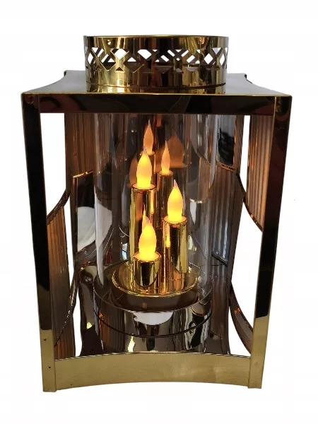 Znicz szklany latarnia kapliczka lampion złoty glamour 24,5 cm mały