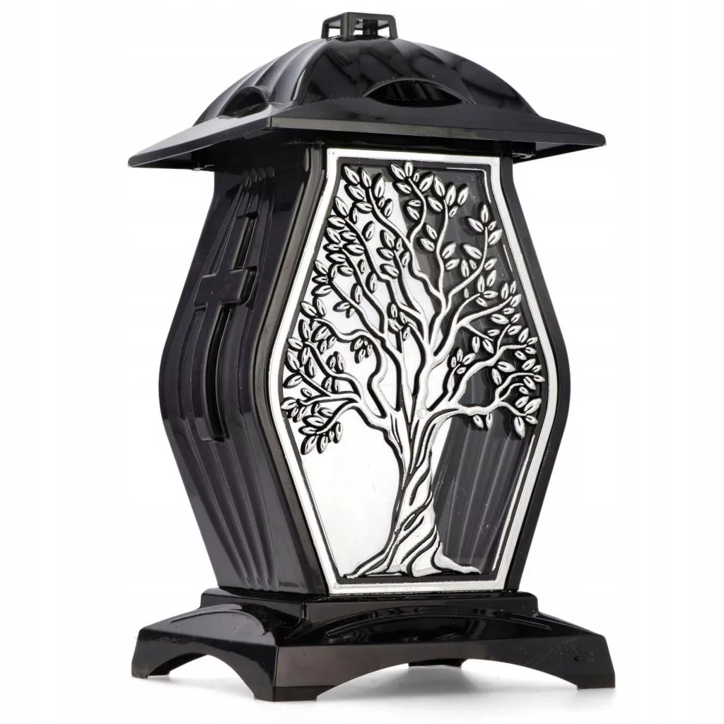 Front znicza zdobi misterna, srebrna aplikacja przedstawiająca drzewo – ponadczasowy symbol życia, rodziny i trwałości. Ten kunsztowny ornament umieszczono na przezroczystej, szklanej szybie. Tylna ściana lampionu, również wykonana z przezroczystego szkła, tworzy efekt "przelotu", pozwalając światłu swobodnie przenikać przez całą konstrukcję. Dodatkowy, wyjątkowy efekt świetlny zapewnia lustrzane dno znicza, na którym stawia się wkład. Dzięki niemu światło płomienia jest odbijane w górę, co potęguje jego blask i pięknie rozświetla wnętrze.