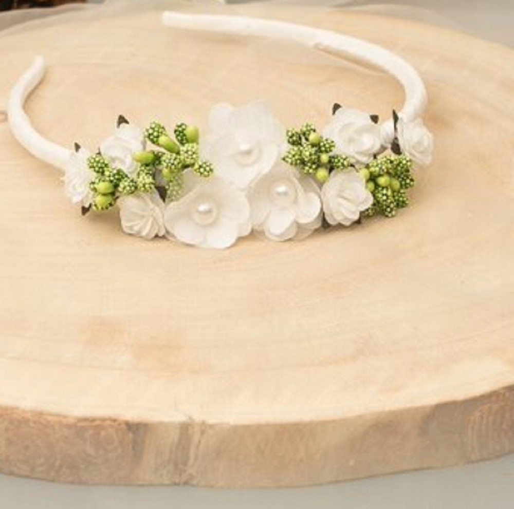 Opaska do włosów , ręcznie ozdobiona lśniącymi akcentami oraz pięknymi kwiatami zachwyci przy wielu okazjach. Idealnie pasuje na Biały Tydzień.