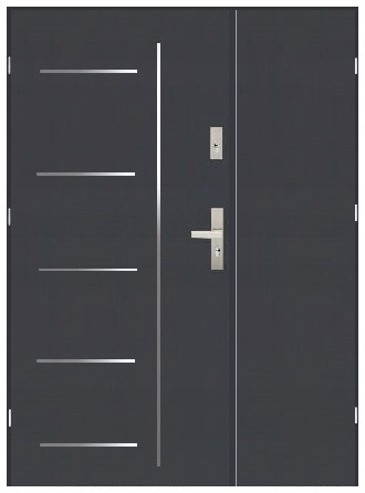 Drzwi wykończone są wysokogatunkową okleiną drewnopodobną PCV odporną na działanie promieni UV. Zabezpieczenie stanowią dwa zamki trzy bolcowe oraz bolce przeciwwyważeniowe od strony zawiasów
