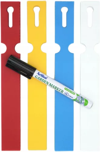 Kolory: biały, czerwony, żółty, niebieskiDostępne również inne rozmiaryMateriał z certyfikatem kontaktu z żywnością – odpowiedni także do znakowania roślin jadalnychPrzystosowana do użytku przez wiele sezonów