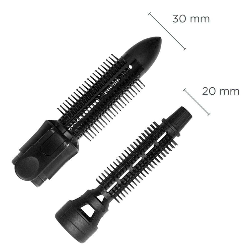 To lokówko-suszarka o mocy 600 W, która oferuje 2 ustawienia temperatury oraz funkcję chłodnego nawiewu do utrwalania fryzury. W zestawie znajdują się dwie wymienne główki szczoteczki, co pozwala na różnorodną stylizację. Urządzenie w szarym kolorze charakteryzuje się cichą pracą (67 dB) i jest wygodne w użyciu dzięki obrotowemu przewodowi o długości 1,75 metra oraz oczku do zawieszania.
