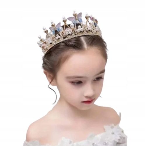 Златна корона тиара диадема с пеперуди за рожден ден причастие бал
