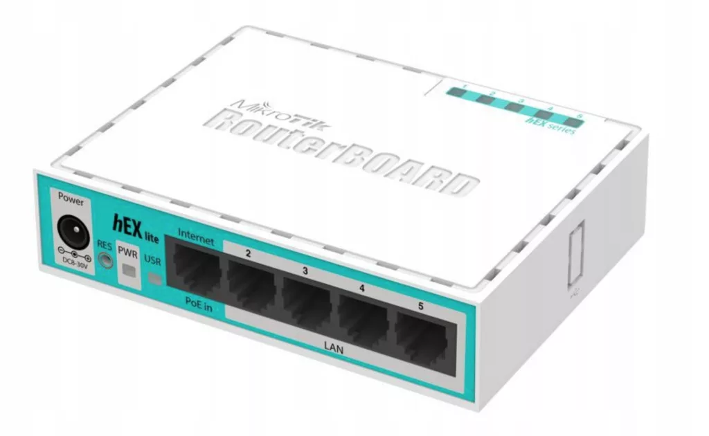RouterBoard hEX lite (RB750R2) jest routerem Mikrotik przeznaczonym głównie na rynek SOHO. Urządzenie oparte jest na procesorze QCA9531-BL3A-R 850MHz i wyposażone jest w 64MB SDRAM oraz 64MB NAND. Wysoka wydajność platformy sprawia, że urządzenie poradzi sobie nawet z bardziej wymagającymi zadaniami, jak np. kształtowanie ruchu. RouterBoard RB750R2 został wyposażony w 5 portów Ethernet 10/100Mbps i sprzedawany jest z preinstalowaną licencją na system RouterOS level 4.