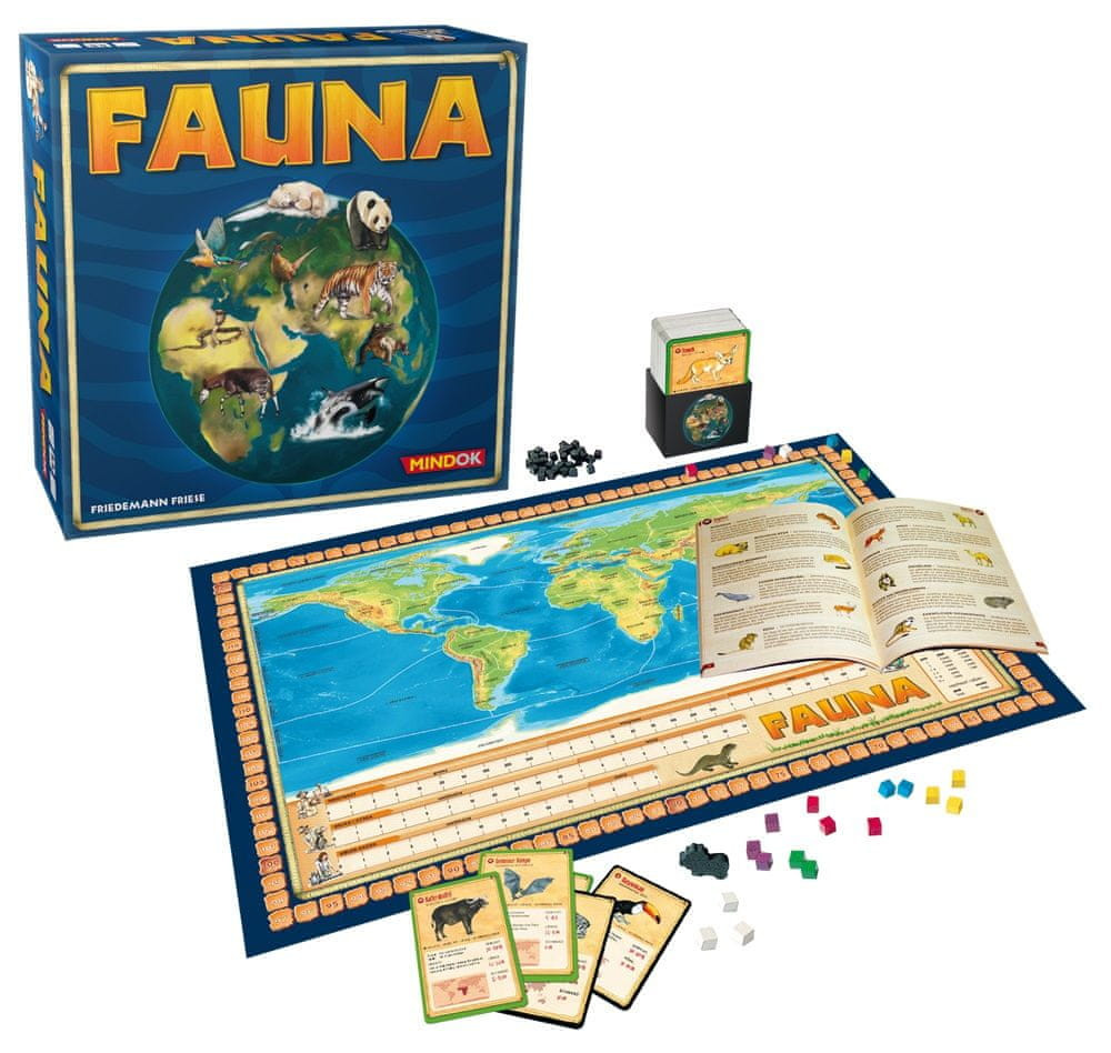 Gra zawiera 180 dużych kart z 360 zwierzętami, plan gry z mapą świata oraz 70-stronicową książkę z opisami wszystkich zwierząt.