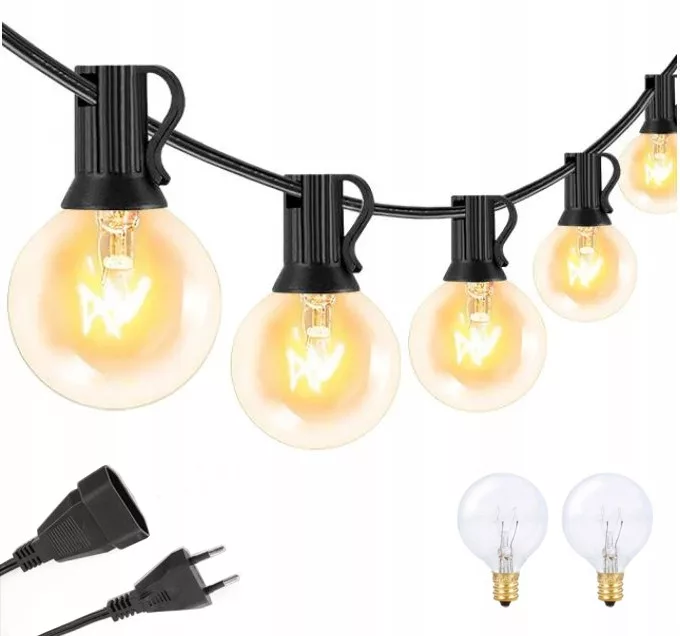 Girlanda wyposażona jest w 25 sztuk wysokiej jakości żarówek wolframowych o mocy 7W. Żarówki posiadają gwint E12