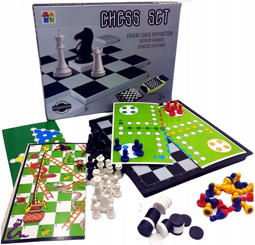 GRY PLANSZOWE ZESTAW 5w1 SZACHY MAGNETYCZNE Warcaby Chińczyk Węże i drabiny