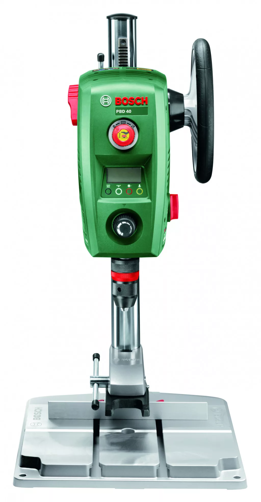 Profesjonalne wiercenie – dwa biegi zapewniające moc i kontrolę lub wysoką prędkość. Beznarzędziowy uchwyt szczękowy wysokiej jakości zapewnia doskonałe mocowanie wiertła, a wbudowany laser i wyświetlacz cyfrowy dostarczają wszystkich potrzebnych informacji. Ścisk pistoletowy w łatwy sposób mocuje nawet okrągłe przedmioty, a ogranicznik wzdłużny i duża płyta robocza umożliwiają dokładne i bezpieczne wypozycjonowanie obrabianego elementu. Wbudowane oświetlenie robocze LED.