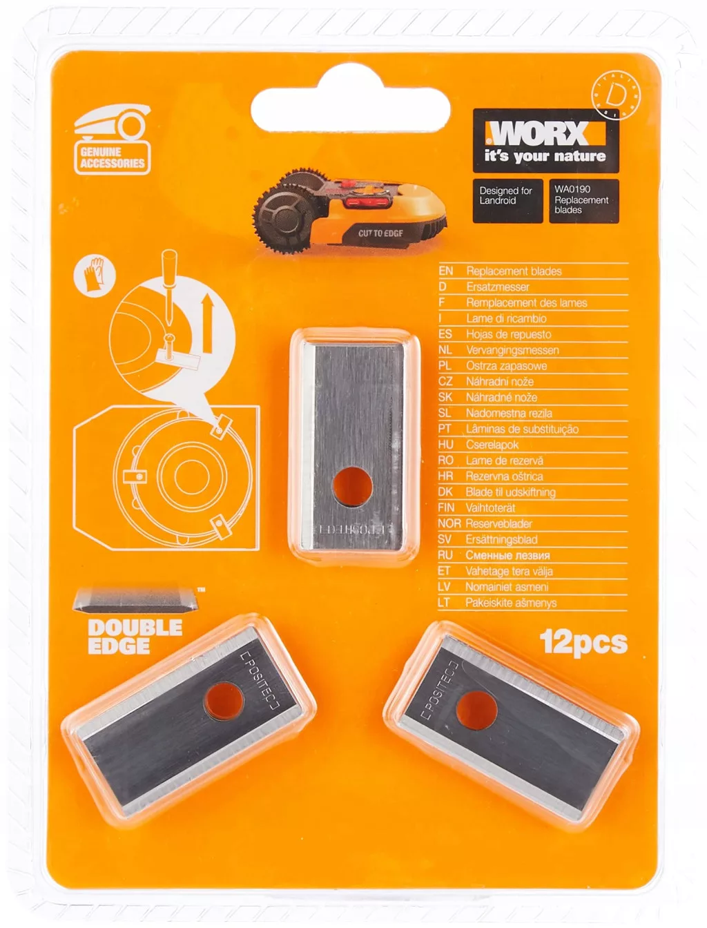 Zestaw akcesoriów WORX zawiera 12 ostrzy noży i śrub, jest jest niezbędny dla wszystkich posiadaczy robota Landroid. Noże umieszczone w dysku tnącym obracają się w obu kierunkach co zdecydowanie zminimalizuje częstotliwość wymiany ostrza. Aby zachować perfekcyjne cięcie należy regularnie wymieniać ostrza.
