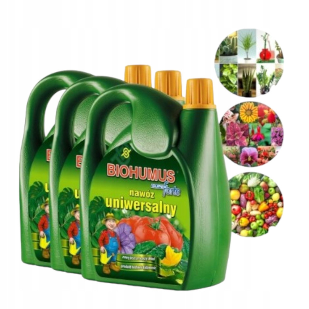 Biohumus Super Forte nawóz uniwersalny to płynny nawóz organiczno-mineralny. Nawóz jest przeznaczony do nawożenia wszelkich roślin ozdobnych uprawianych w domu, na balkonie, na tarasie i w ogrodzie. Nawóz ten zawiera łatwo przyswajalny azot, fosfor i potas – składniki niezbędne roślinom do prawidłowego wzrostu. Systematyczne stosowanie nawozu sprawia, że rośliny są dobrze odżywione. Dzięki temu rośliny są bardziej odporne na niekorzystne czynniki, tj. susza, niskie temperatury, choroby czy szkodniki. Biohumus Super Forte uniwersalny wprowadza do podłoża substancje pochodzenia organicznego i mineralnego bez ryzyka przenawożenia.