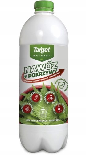 Nawóz z pokrzywy 1 l firmy Target doskonale się sprawdza w polowej uprawie warzyw, w ogrodach działkowych i przydomowych. Można go stosować przez cały okres wegetacyjny a w szczególności w okresie intensywnego wzrostu roślin. Nawóz jest wbogacony w składniki pokarmowe naturalnego pochodzenia w tym głównie azot, potas i fosfor.