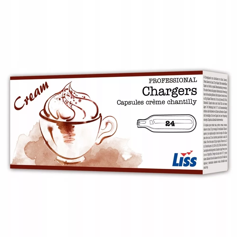 Naboje marki Liss do syfonu do bitej śmietany. Wykonane z wysokiej jakości stali, która wytrzymuje ciśnienie niezbędne do wykonania bitej śmietany. Każdy nabój jest wypełniony 8 g czystego N20 (podtlenek azotu), który jest całkowicie bezpieczny dla zdrowia i bezsmakowy o lekko słodkim zapachu. Dodatkowo gaz jest bakteriostatyczny - chroni przed rozwojem bakterii, co przekłada się na możliwość dłuższego przechowania śmietany w syfonie bez ryzyka szybszego jej zepsucia.