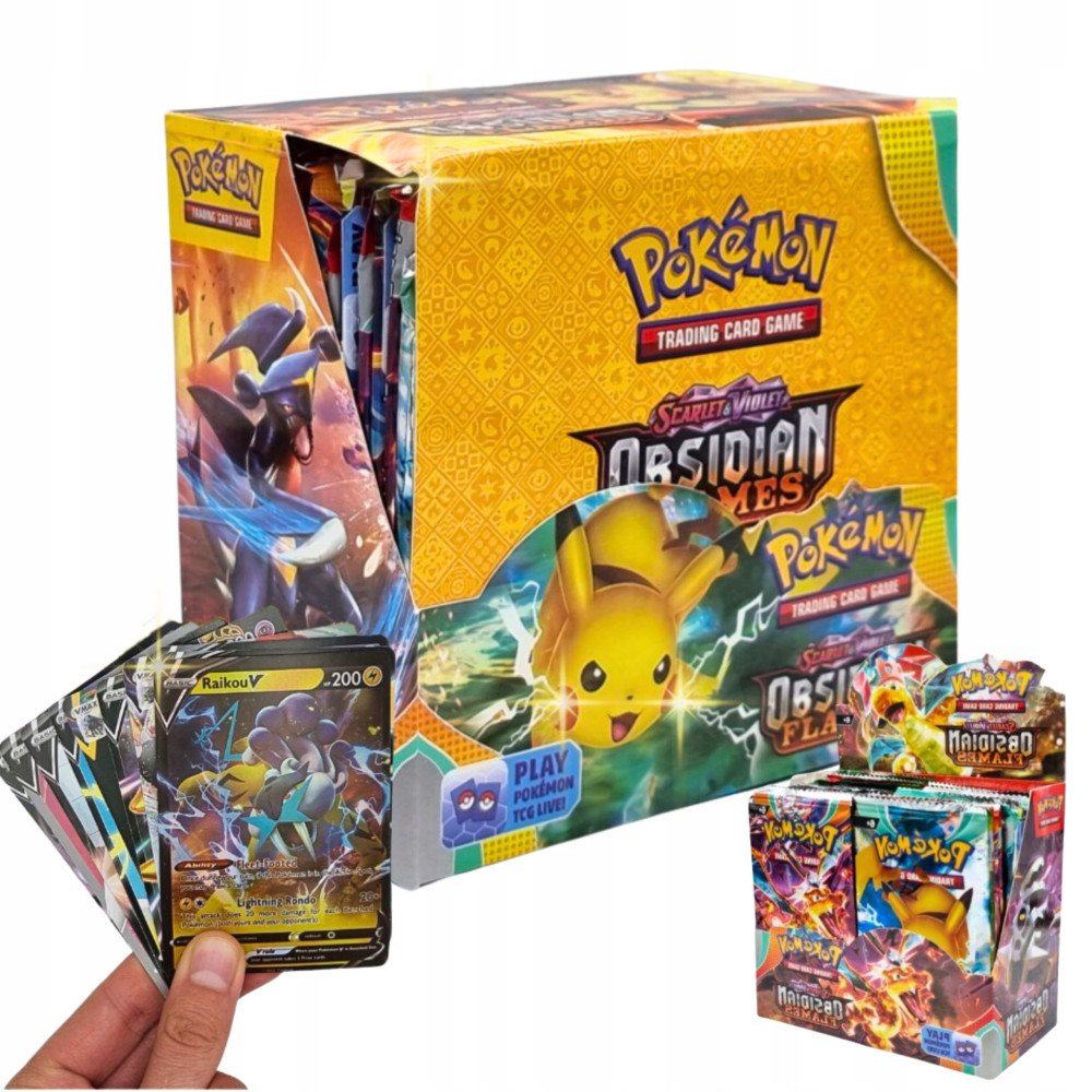 W zestawie znajduje się 36 saszetek po 10 kart z serii SCARLET & VIOLET OBSIDIAN FLAMES