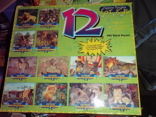 Puzzle 12w1 4x48 + 8x100 elem. ZWIERZETA Unikat. Każda układanka osobno zapakowana, dołączony duży plakat - poster w wszystkimi obrazkami.