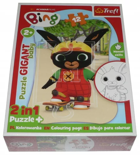 PUZZLE TREFL GIGANT BABY 12 elementów z kolorowanką na rewersie - 2w1 - BING !