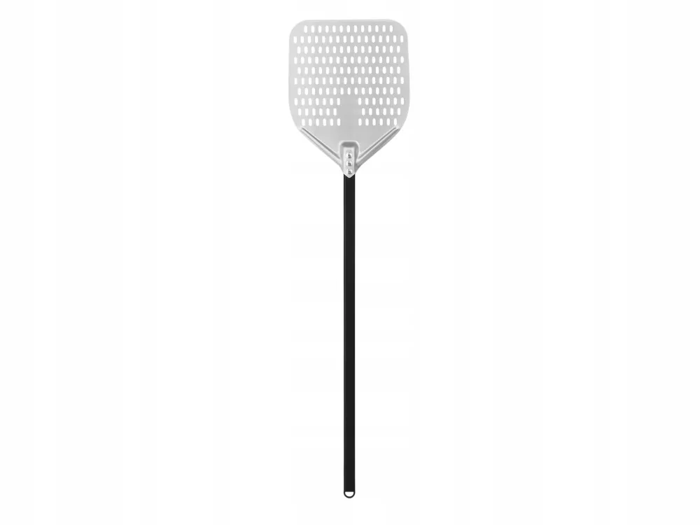 Zastosowana perforacja na powierzchni roboczej (system otworów na łopacie) usuwa nadmiar mąki ze spodu pizzy, dodatkowo obniża wagę łopaty.