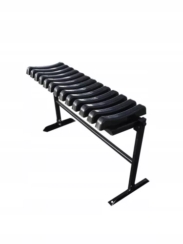 Ławeczka wykonana jest z profili zamkniętych, bardzo wytrzymała .Jest wytrawiana i malowana na kolor czarny struktura metodą proszkową (brak jakichkolwiek niedomalowań i niedociągnięć).Profil jest zakończony czarnymi zaślepkami co dodatkowo wpływa na jej estetyczny wygląd. Siedzisko ławeczki wykonane jest z kostki PVC z dodatkiem granulatu UV aby nie blakło na słońcu.Jest koloru czarnego odporna na zjawiska atmosferyczne.