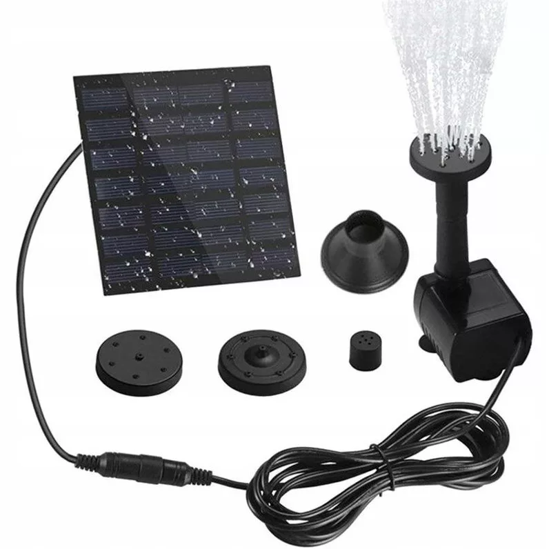 Fontanna z pompką do oczka wodnego bądź innych zbiorników wodnych, zasilana energią słoneczną z panelu! Zastosowanie specjalnego panelu słonecznego likwiduje konieczność użycia dodatkowego źródła zasilania. Możesz cieszyć się wspaniałą, wodną kaskadą nawet w miejscach z deficytami energii elektrycznej.