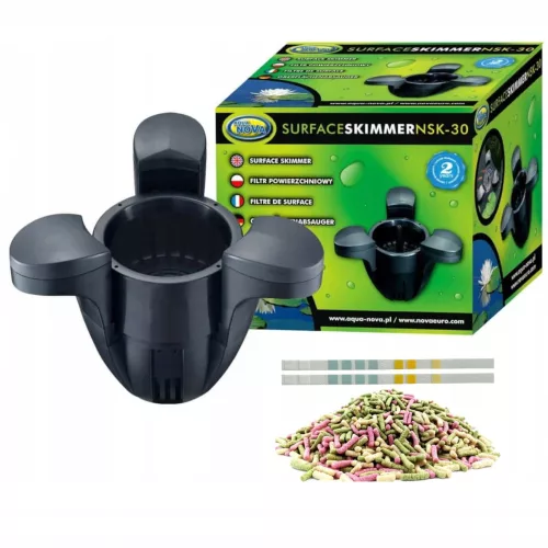 Skimmer zapewnia wygodne oczyszczanie powierzchni wody z wszelkich zanieczyszczeń, które powodują zagrożenie dla zachowania równowagi biologicznej w oczku wodnym, co w konsekwencji prowadzi do inwazji glonów.