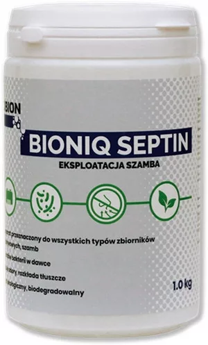 Biopreparat BioniQ Septin należy przechowywać w miejscu suchym i przewiewnym, w zamkniętym opakowaniu w temp. max. 25⁰C. Chronić przed dziećmi. Bakterie zawarte w preparacie są bezpieczne dla ludzi, zwierząt i środowiska. Produkt biodegradowalny.