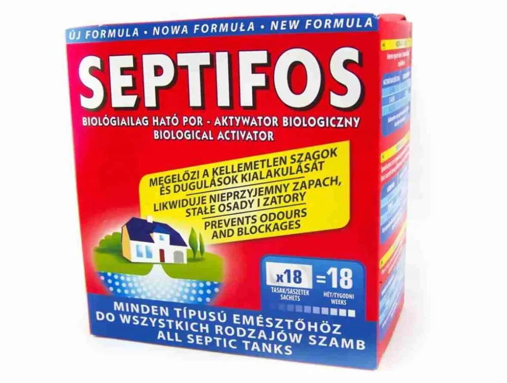 Septifos oferuje opatentowane, bardzo wydajne preparaty przeznaczone do szamba. Zadaniem produktów Septifos jest aktywacja naturalnych procesów przetwarzania zawartości szamba poprzez stymulowanie rozwoju bakterii. Aktywatory biologiczne zmniejszają poziom osadu w zbiorniku i zapobiegają zatorom. Jeśli osad jest zredukowany zmniejsza się również nieprzyjemny odór, a opróżnianie zbiornika jest rzadsze.