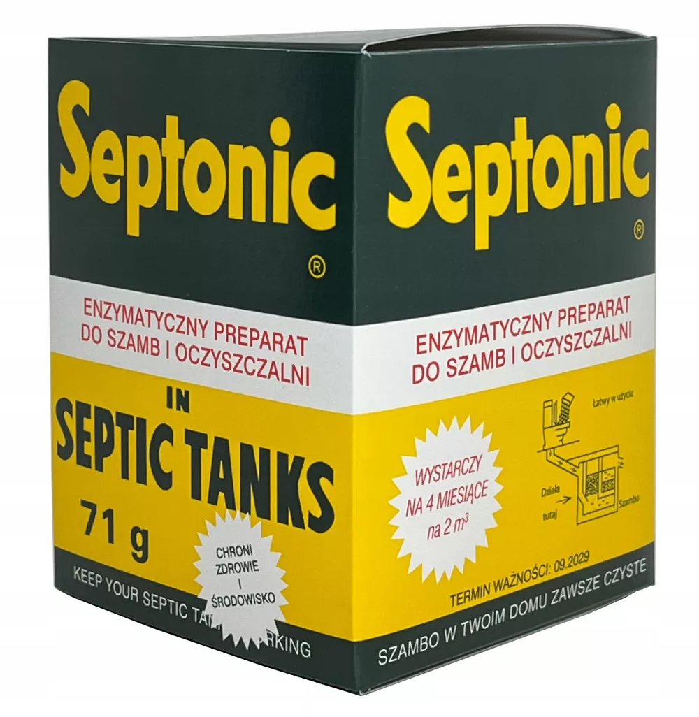 Preparat do szamb i oczyszczalni w pełni enzymatyczny, nie zawierający żadnych niebezpiecznych składników. Przeznaczony do neutralizacji ścieków.