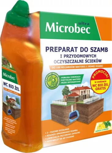 Microbec Ultra to najnowszej generacji enzymatyczny preparat do szamb i przydomowych oczyszczalni, którego regularne stosowanie zmniejsza częstotliwość opróżniania szamba i wspomaga pracę przydomowych oszczyszczalni. Usuwa nieprzyjemny zapach i udrażnia system instalacji sanitarnej.