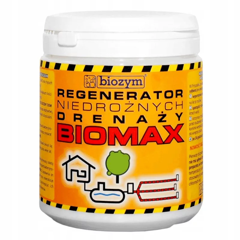 BioMax zawiera bakterie do szamb i oczyszczalni. Jest to wysoce efektywny bioprodukt pozwalający odblokować niedrożny drenaż, bez potrzeby ponownej instalacji systemu drenów. Oszczędza wydatki, pozwala uniknąć dewastacji posesji. Produkt zawiera dużą koncentrację bakterii i enzymów, które rozpuszczają wszystkie organiczne złogi w drenażu. Będziesz zaskoczony jego skutecznością! BioMax jest prosty w zastosowaniu oraz bezpieczny dla ludzi, zwierząt i roślin. Preparat zawiera, w olbrzymiej koncentracji bakterie oraz mieszaninę immobilizowanych enzymów, przeznaczonych w szczególności, do rozkładu olejów, tłuszczów, wosków - które najczęściej są przyczyną wadliwego funkcjonowania drenażu. Nie niszczy oczyszczanych instalacji.