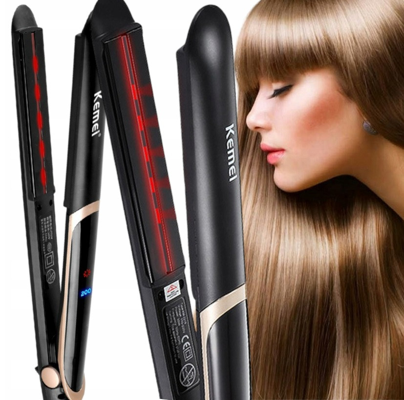 Prostownicę cechują ergonomiczne kształty, dzięki którym idealnie leży w dłoni. Stylizacja włosów z prostownicą Kemei to czysta przyjemność.