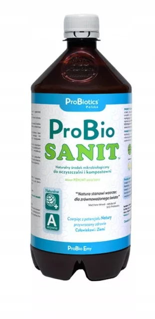 Naturalny, mikrobiologiczny płyn do czyszczenia i higienizacji przydomowej oczyszczalni ścieków i domowej kanalizacji. Niezawodny i ekologiczny produkt, skuteczny w domu (łazienki, kuchnie) oraz w Twoim gospodarstwie (szambo, ogród, zbiorniki wodne). Mnogość zastosowań czyni go atrakcyjnym i jedynym na rynku tego typu produktem o szerokim spektrum działania. Probio Sanit jest unikalny, ponieważ wszystkie jego komponenty powstają w procesie naturalnej fermentacji i dopiero w takiej postaci połączone są w produkcie. Dzięki temu produkt nie podrażni Twoich oczu, skóry ani układu oddechowego w przeciwieństwie do podobnych produktów złożonych z syntetycznych składników.