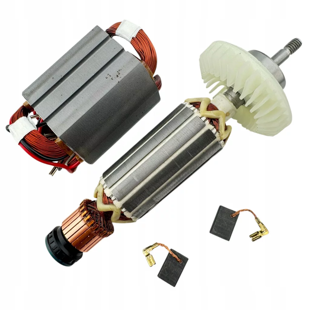ZESTAW: wirnik, stojan, 2szt. łożysk, 2szt. szczotek węglowych z bezpiecznikami, amortyzator łożyska.