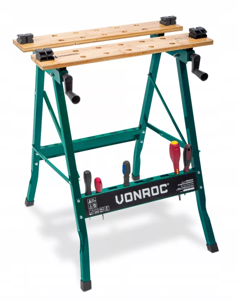 Ponadto możesz go również w łatwy sposób przechowywać dzięki jego małym rozmiarom. Stołu VONROC możesz używać kiedy potrzebujesz dociąć ręcznie drewno, płyty kartonowo gipsowe lub wywiercić otwory w drewnie bądź innym materiale.