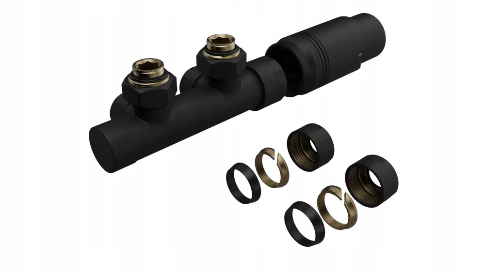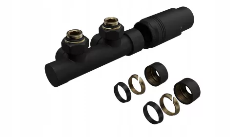 Ekskluzywny czarny zestaw termostatyczny typu Duoplex na rozstaw 50mm jest przeznaczony do podłączenia grzejników łazienkowych dekoracyjnych , ale również do podłączenia grzejnika panelowego dekoracyjnego zasilanego od dołu. Jest to komplet odwracalny co oznacza, że może być zastosowany z głowicą z lewej lub z prawej strony.