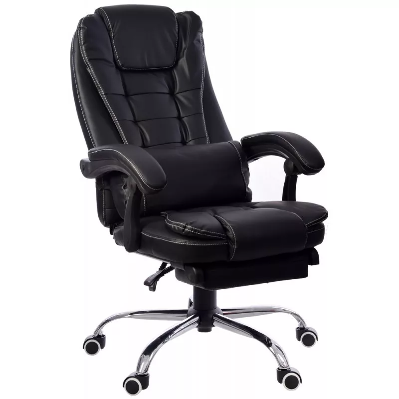 Fotel biurowy wykonany został ze skóry ekologicznej jest bardzo wygodny, posiada wspieranie lędźwi, dodatkową poduszkę oraz podnóżek