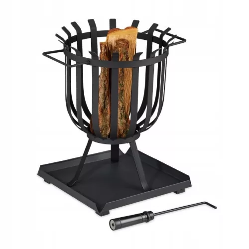 Czarna misa paleniskowa z podstawkąCzy w ciepły letni wieczór, czy w chłodne zimowe popołudnie, ognisko zawsze tworzy przytulną atmosferę. Przy okrągłym ognisku można upiec kiełbaski, pianki marshmallows lub napić się grzanego wina. Czarny kosz na drewno opałowe jest stabilny dzięki trójnożnej ramie i można go łatwo przenosić za pomocą uchwytów. Podstawa chroni podłoże przed spadającym żarem i popiołem, a pogrzebacz jest idealny do rozpalania ognia.
