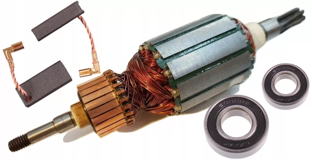 Zestaw zawiera: wirnik, 2 łożyska, 1 komplet szczotek węglowych z bezpiecznikiem
