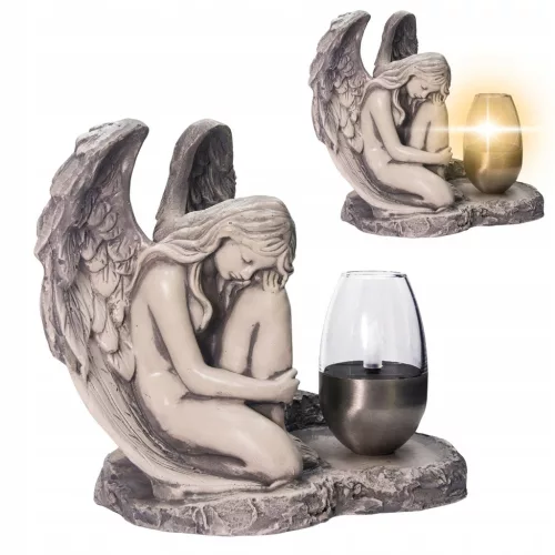 ➡️ Ozdobna gipsowa figurka ogrodowa, nagrobna z lampą LED w kształcie aniołka