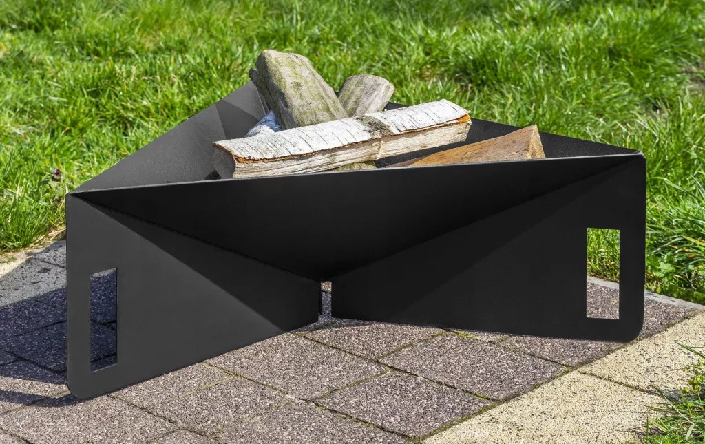 dostawąUniwersalne Palenisko ogrodowe trójkątne na którym można zarówno przyrządzić grilla jak i zrobić ognisko. Wykonane jest z wytrzymałej i grubej stali 3mm pokryte farbą.