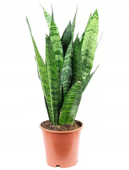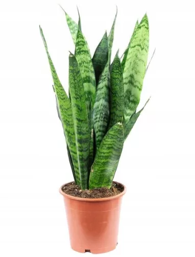 Jeden z najpopularniejszych, a jednocześnie najpiękniejszych i najbardziej uniwersalnych gatunków sansevierii. Jest rośliną domową tworzącą kępy szerokich, mieczowatych liści, których długość sięga 75 cm. Oprócz ciekawej formy, ten gatunek wężownicy wyróżnia się oliwkowo zieloną kolorystyką. Na powierzchni jej liści dominuje srebrzysta zieleń przeplatana przez nieregularne, ciemniejsze cętki. Jej wyprostowane, mieczowate liście czasem lekko się skręcają, zawsze jednak ustawione są niemal pionowo w stosunku do podłoża. Bardzo modna roślina domowa o wszechstronnym zastosowaniu, idealnie pasuje do nowoczesnych wnętrz.