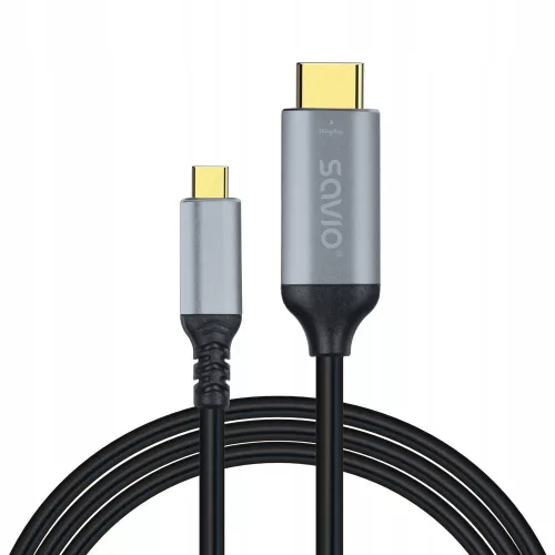 SAVIO CL-184 to wysokiej jakości kabel USB-C do HDMI. Umożliwia bezproblemowe przesyłanie obrazu i dźwięku w najwyższej jakości z urządzeń wyposażonych w port USB-C do wyświetlaczy i monitorów z wejściem HDMI.