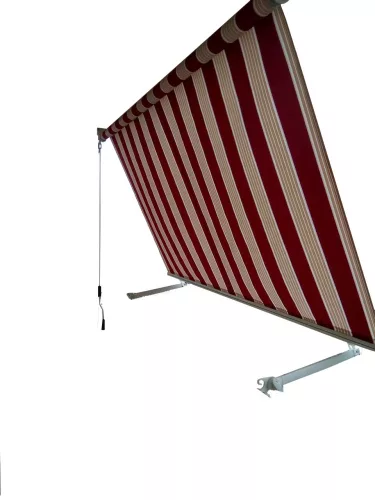 Ramiona tej markizy mocowane są do balustrady, co sprawia że doskonale sprawdza się przy montażu na balkonach.