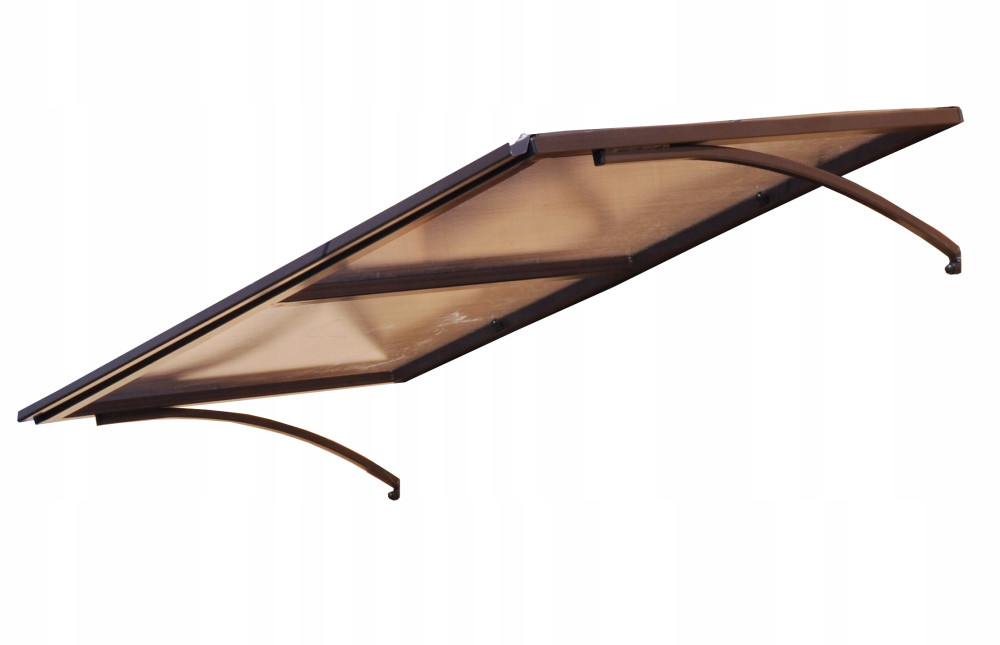 Daszek płaski na poliwęglanie dymionym oraz stelażu brązowym o wymiarach 1,4m x 0,7m x 0,2 z podporami bocznymi i rynną ,daszek w całości wykonany z profili aluminiowych 30x20x2.