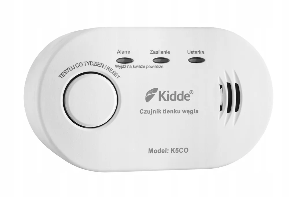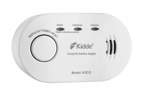Czujnik tlenku węgla K5CO wyposażony w sensor elektrochemiczny Kidde, gwarantujący 10-letni okres pracy. Zasilanie bateryjne umożliwia zamontowanie detektora w optymalnym miejscu w pomieszczeniu oraz zapewnia ochronę także w przypadku zaniku napięcia zasilania w sieci. Przekroczenie dopuszczalnego poziomu CO sygnalizowane jest optycznie (czerwona dioda LED) oraz akustycznie (głośny, pulsacyjny alarm dźwiękowy o sile 85dB). W pamięci urządzenia zapisywana jest informacja o wykryciu stężenia CO przekraczającego poziom 100 PPM. Dzięki temu użytkownik może upewnić się, czy podczas jego nieobecności w pomieszczeniu nie doszło do emisji tlenku węgla. Czujnik posiada przycisk testu / resetowania umożliwiający sprawdzenie działania urządzenia oraz zresetowanie sygnalizacji alarmowej.
