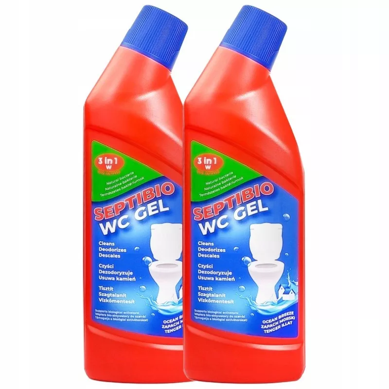 Żel do WC Septibio pozwala na skuteczną dezynfekcję toalet oraz usunięcie osadzającego się kamienia. Preparat świetnie sprawdza się również w przypadku innych urządzeń łazienkowych takich jak wanny, prysznice czy umywalki. Skoncentrowana formuła posiada właściwości wspomagające działanie aktywatorów biologicznych do szamba oraz nie narusza jego równowagi biologicznej. Żel neutralizuje nieprzyjemne zapachy pozostawiając świeży morski zapach.