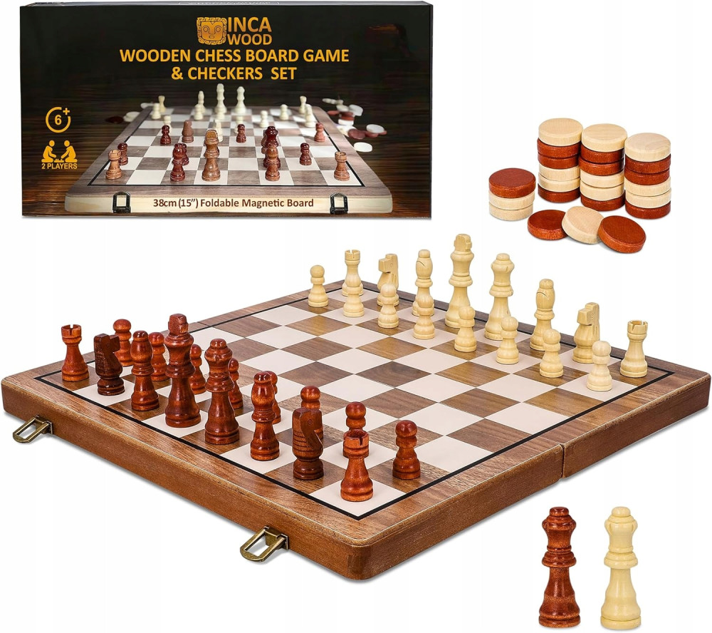 Zestaw szachowy, magnetyczna szachownica z drewna, wykonana ręcznie - piękny i przenośny zestaw szachów podróżnych dla dorosłych i dzieci, wymiary 39 x 39 cm.