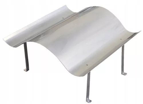 Daszek wykonany z najwyższej jakości stali nierdzewnej kwasoodpornej AISI 304, dzięki czemu charakteryzuje się najwyższą trwałość i odporność na warunki atmosferyczne. Daszek montowany za pomocą 4 wkrętów montażowych do komina, dzięki czemu zyskuje on stabilność i trwałość.